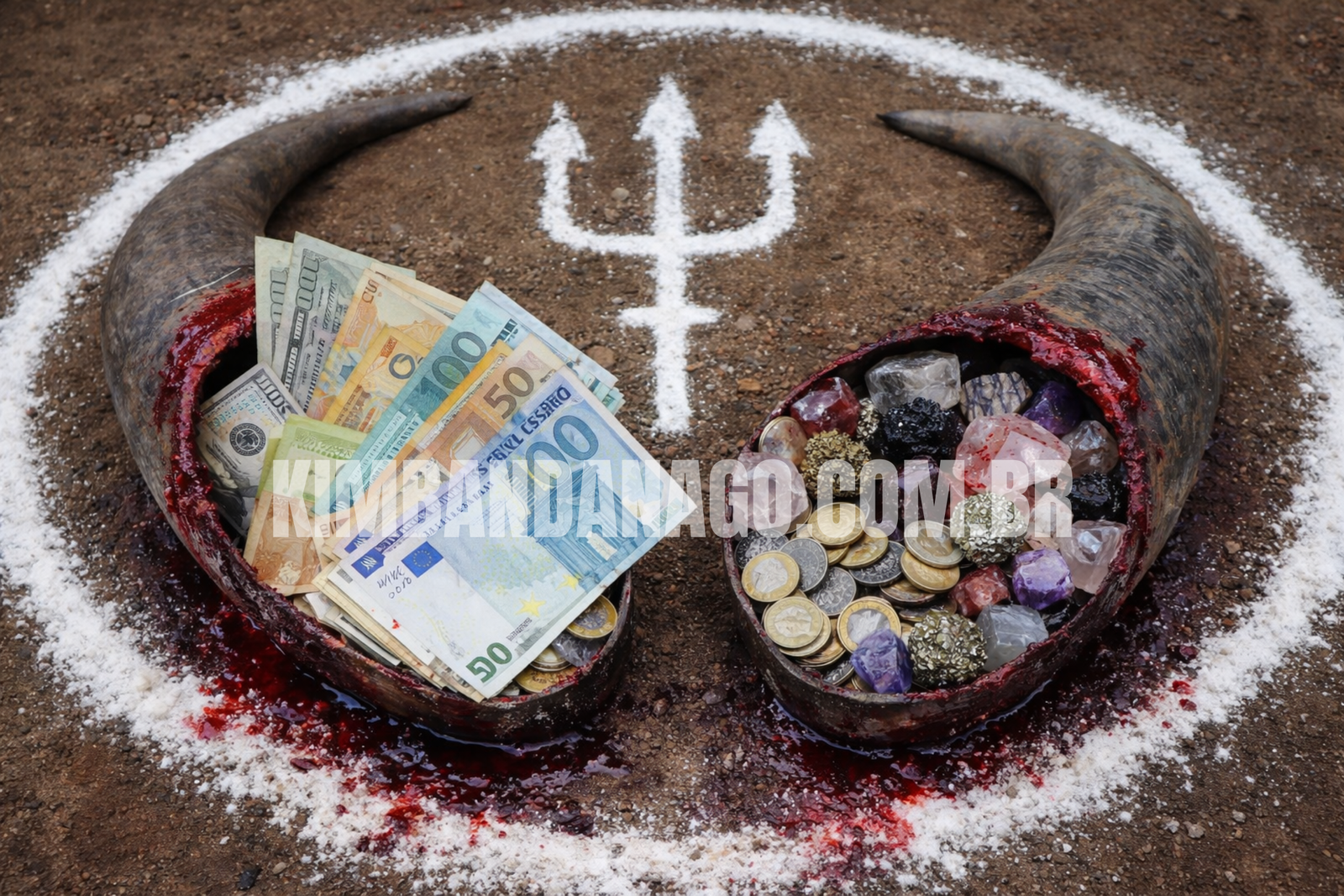 Uma excelente magia que pode ser realizada com essa entidade, tanto para despertar sua força quanto para obter progresso financeiro, consiste em utilizar um chifre grande de animal, preferencialmente aqueles mais profundos e curvados, formando algo semelhante a um caracol em sua extremidade, simbolizando o ciclo contínuo e o infinito.